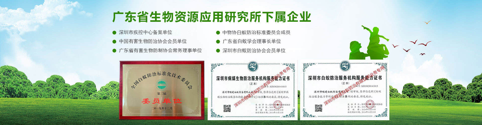 專注于徹底根治、防治結(jié)合,售后跟蹤服務(wù),專業(yè)服務(wù)工程師有豐富實戰(zhàn)經(jīng)驗超過十年。持有專業(yè)資格證書認證:“有害生物防制服務(wù)機構(gòu)服務(wù)能力證書B級”、“白蟻防治服務(wù)機構(gòu)服務(wù)能力證書B級”所有員工持有“深圳市白蟻防治上崗證”和“深圳市除蟲滅鼠上崗證”,雙資格證上崗服務(wù)。榮獲過:“優(yōu)質(zhì)服務(wù)示范單位”、“白蟻防治服務(wù)信譽AAA級單位”、“深圳市白蟻防治先進單位”、“深圳市十大白蟻防治品牌”、“深圳市殺蟲公司”、“深圳市消殺公司”先進單位等榮譽。